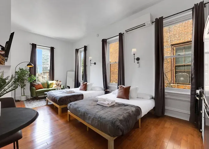 For your convenience, New Studio In Center City That Sleeps 4 With Fast Wifi comprises an equipped kitchenette with an electric kettle, a fridge, and kitchenware provided. Philadelphia, PA train station is nearly 10 minutes' walk away, and Walnut St & 23rd St bus stop is only steps away from New Studio In Center City That Sleeps 4 With Fast Wifi.